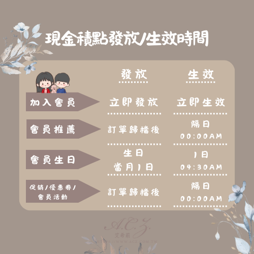 *訂單失敗:訂單中已抵用的積點,在訂單狀態轉為「失敗」或「取消」時,將立即自動回補至會員帳戶。