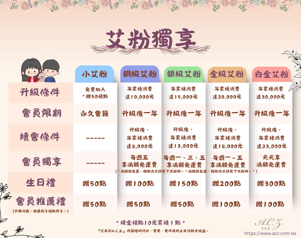 (注意:更新等級會使『消費累積金額』重置(歸0)。)