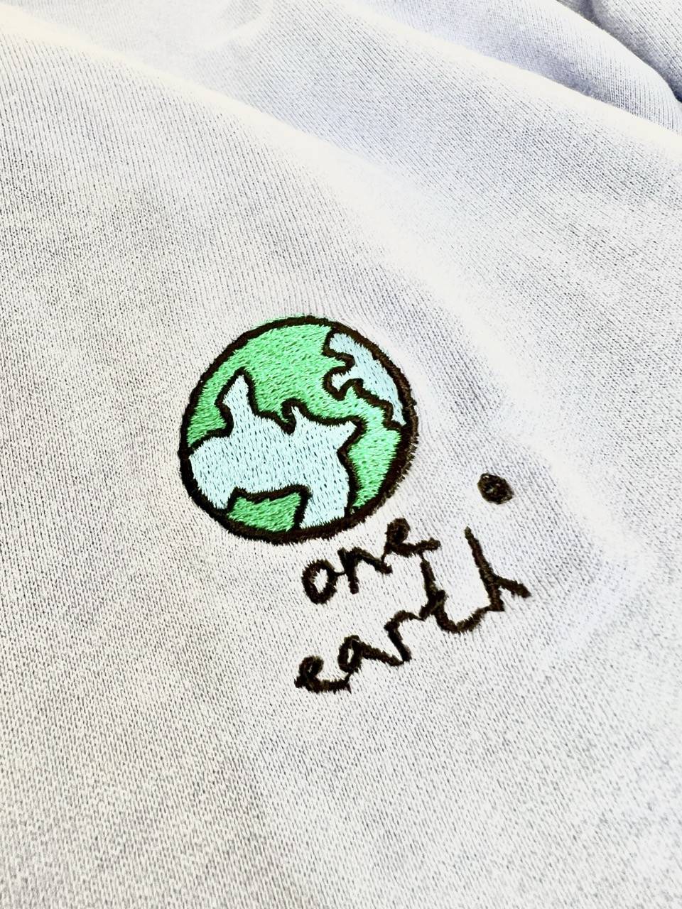 胸前有歐尼手繪的地球圖案 ,刺繡質感精緻漂亮。