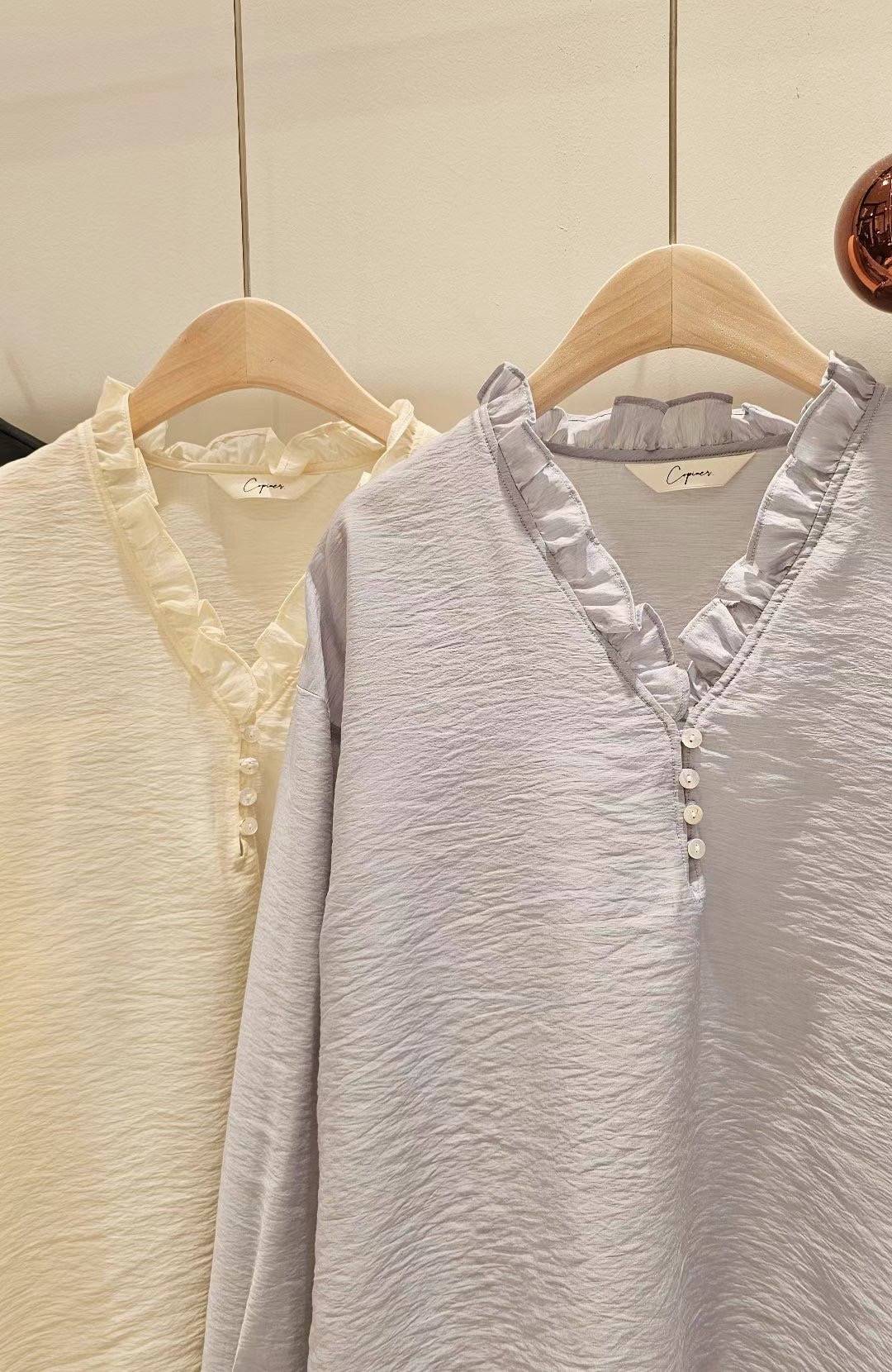 領邊的小荷葉精緻氣質,搭配西褲/牛仔褲或是裙裝都好看