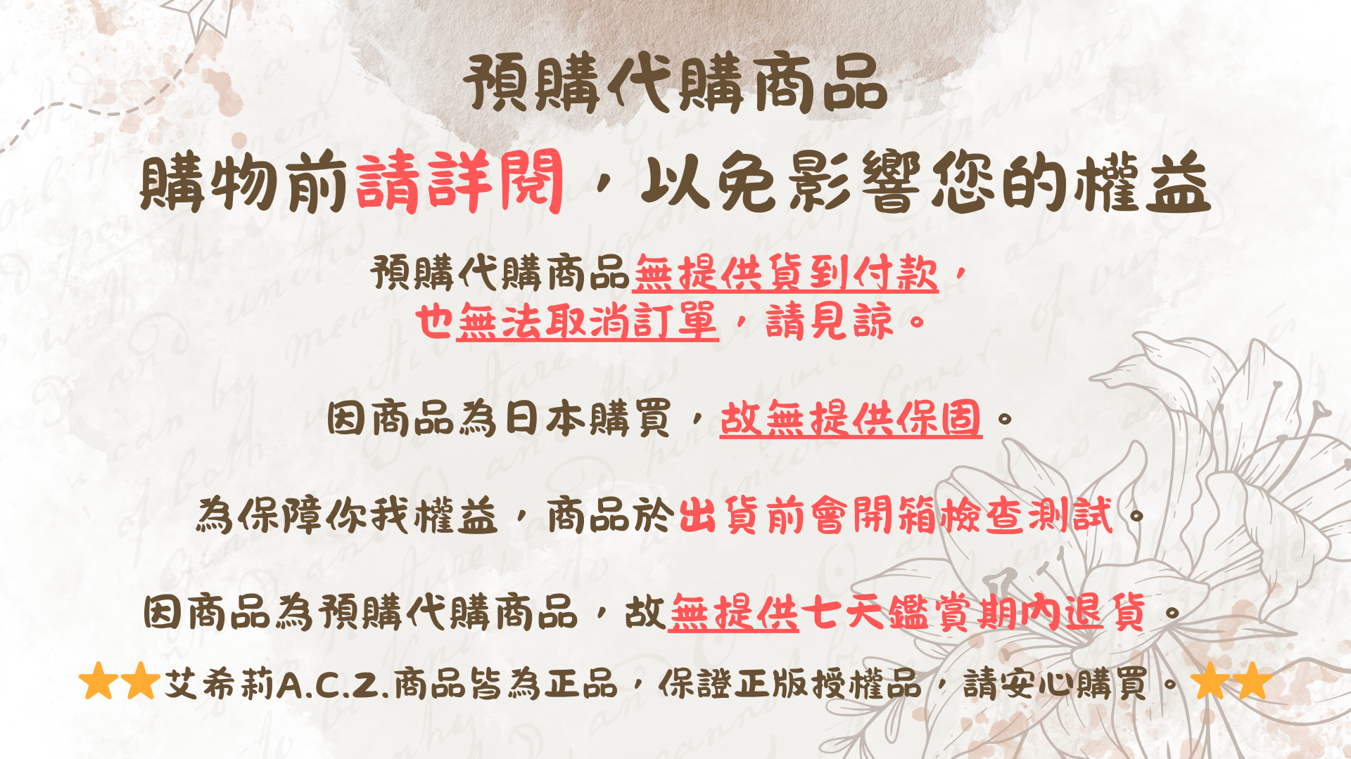 出貨時間:商品發售到貨後,會依照訂單順序出貨,不接急單,請見諒。