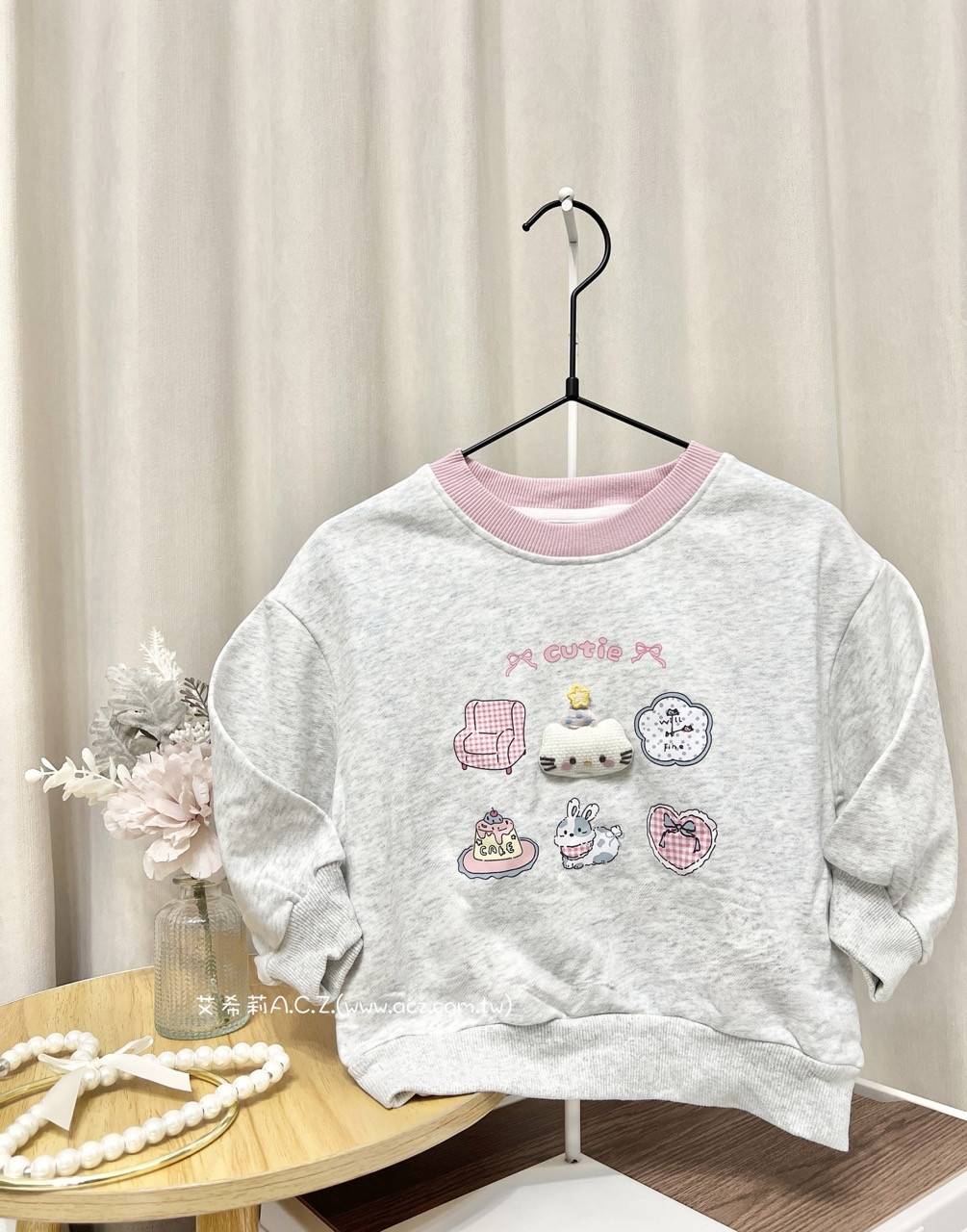 商品詳情 平量尺寸: 5號(90cm)——胸寬cm衣長cm 7號(100cm)——胸寬cm衣長cm 9號(110cm)——胸寬cm衣長cm 11號(120cm)——胸寬cm衣長cm 13號(130cm)——胸寬cm衣長cm 材質: 產地:Made in CHINA cutie小貓長袖上衣 TWD $285 TWD $285