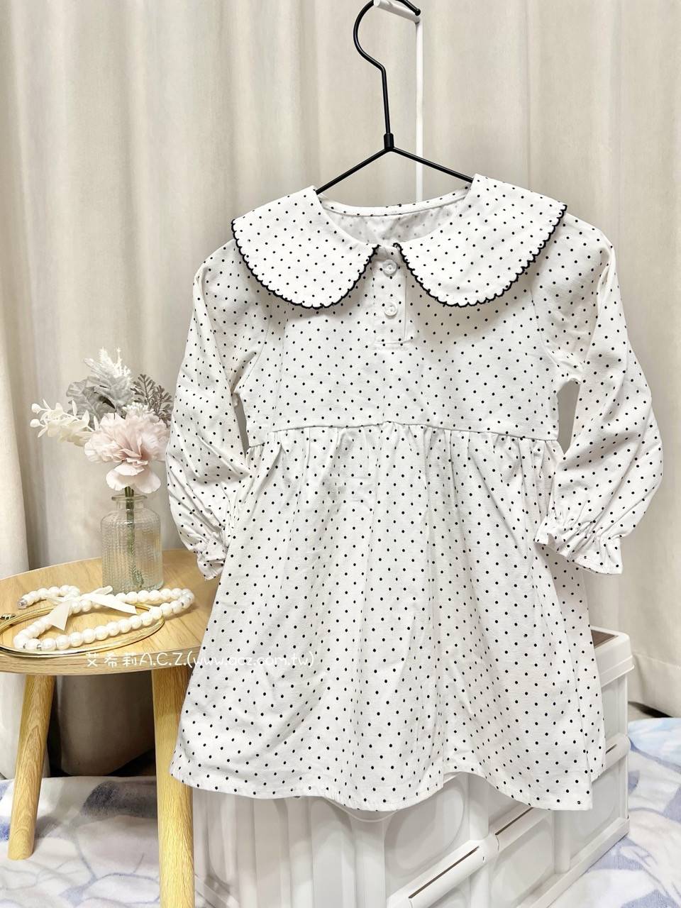 商品詳情 平量尺寸: 5號(90cm)——褲寬cm褲長cm 7號(100cm)——褲寬cm褲長cm 9號(110cm)——褲寬cm褲長cm 11號(120cm)——褲寬cm褲長cm 13號(130cm)——褲寬cm褲長cm 材質: 產地:Made in CHINA 可愛點點長袖洋裝 TWD $250 TWD $250
