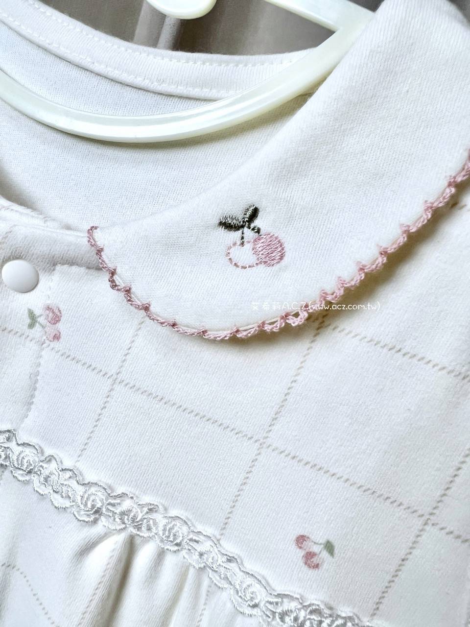 商品詳情 平量尺寸(因手工測量,約3~5cm誤差): 73cm——胸寬30.5cm衣長59.5cm 80cm——胸寬31cm衣長61cm *手工測量尺寸皆為參考值,以商品實際尺寸為主。 材質: 產地:Made in CHINA 格子櫻桃長袖包屁褲裝 TWD $268 TWD $268